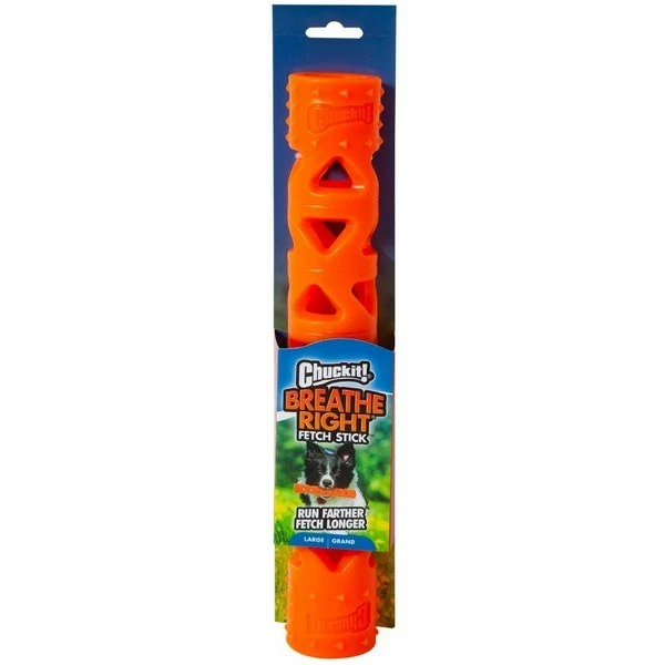 Like the Chuckit!® Breathe Right balls, the unique design of this fetch stick helps to improve airflow when carried in a dog’s mouth. The open design helps dogs to breathe easier during play, even when the toy is in their mouth.