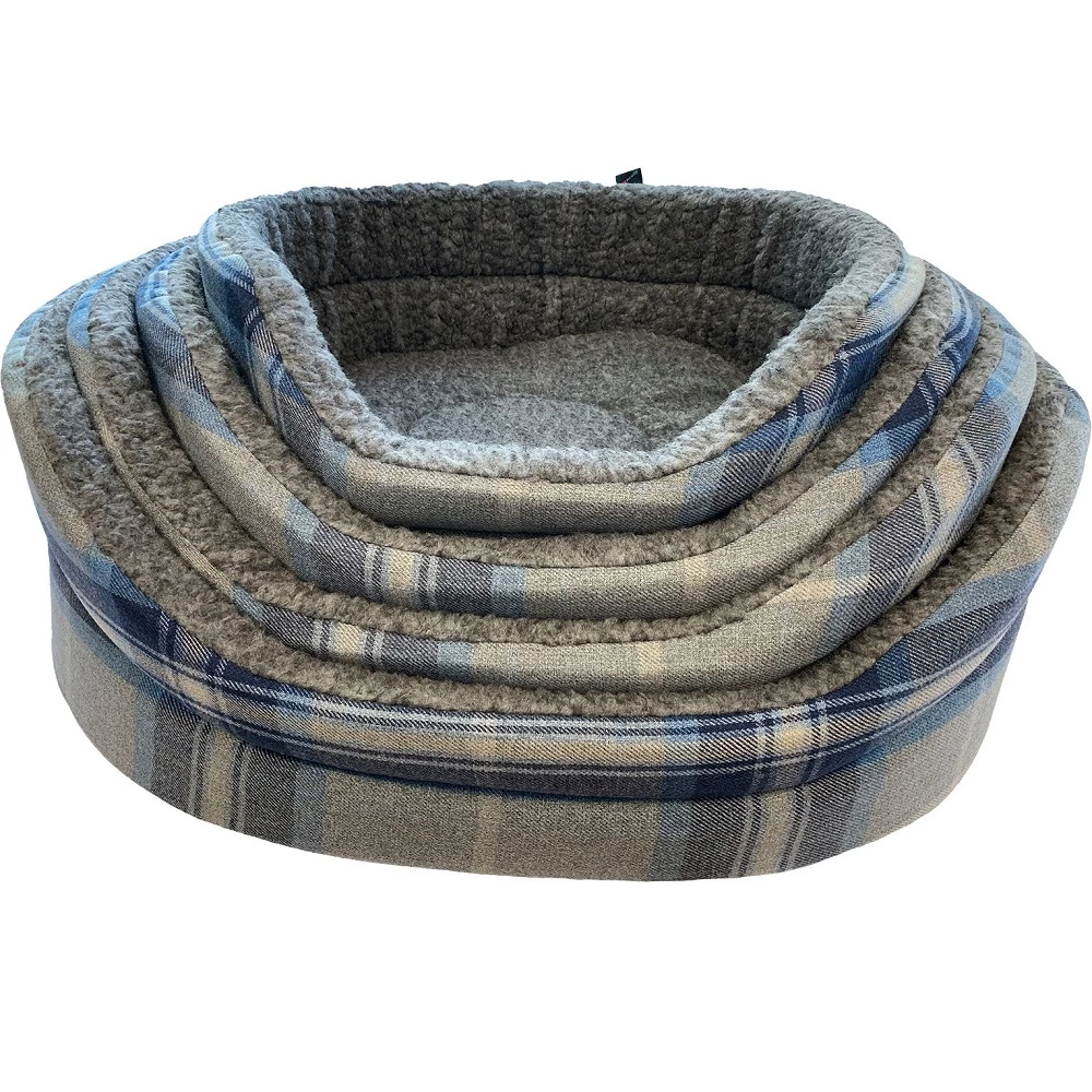 Country Check Oval Bed Grey/Blue – Medium (28″)