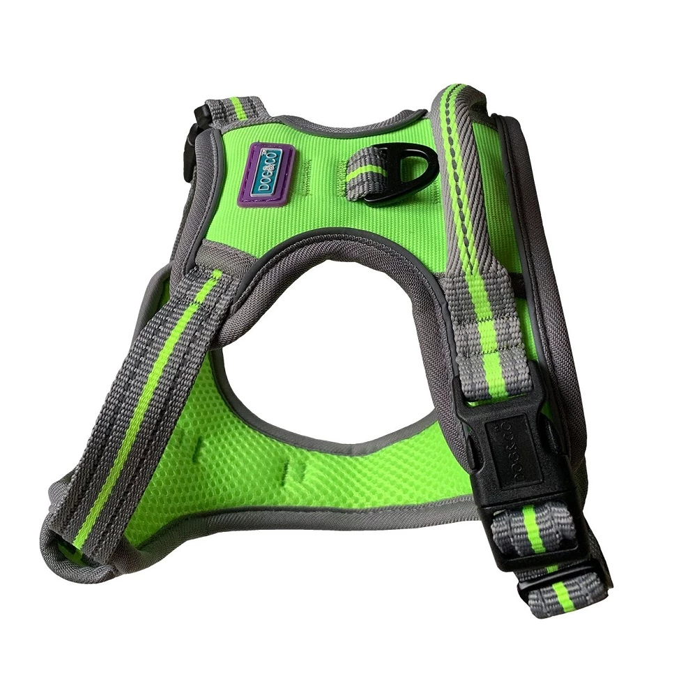 The harness are fully adjustable with two easy clip buckles on the chest and one on the neck strap.